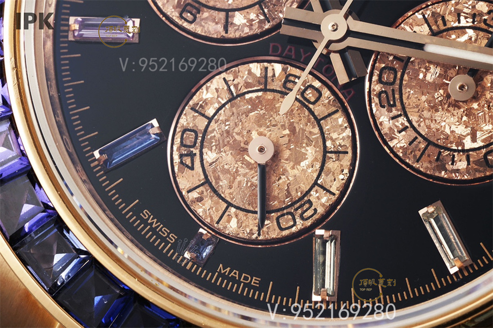 廠家的介紹方面:ipk彩虹迪傾力打造,為了達(dá)到我們想要的勞力士 彩虹迪通拿原裝效果,重金打造研發(fā),精工細(xì)致而成,三個(gè)獨(dú)立計(jì)時(shí)盤(pán)的金晶體特殊效果均獨(dú)一無(wú)二,迷人的反光效果和瑰麗的色彩充分展示了金晶體的曼妙結(jié)構(gòu),每件皆是渾然天成的藝術(shù)杰作。金晶計(jì)時(shí)盤(pán)的色澤與黑色表盤(pán)形成鮮明對(duì)比,并與寶石的色彩互相輝映,搭配鑲鉆的時(shí)標(biāo)刻度與黃金指針讓整個(gè)表盤(pán)流光溢彩、整體美感爆棚,愛(ài)不釋手。勞力士最熱門(mén)宇宙計(jì)型 迪通拿款,采用進(jìn)口真904L鋼材,厚度12.3mm同正品材質(zhì)型號(hào)相同,鋼帶拉絲細(xì)膩,顏色更白凈亮麗,堅(jiān)固耐磨損。機(jī)芯依舊保留強(qiáng)大的計(jì)時(shí)功能,搭配一體機(jī)4130機(jī)芯全功能計(jì)時(shí),新工藝一體成型的陶瓷圈口與正品工藝一致,刻度效果呈現(xiàn)具有深度,圓潤(rùn)。字面條丁金屬鏡面加工,無(wú)毛疵感,采用瑞士進(jìn)口強(qiáng)夜光粉。時(shí),分指針進(jìn)行凹槽切割填亮黑油工藝,并非普通印刷,質(zhì)感相差極大。高通透藍(lán)寶石玻璃,鏡面效果質(zhì)感非常高。顏色采用A+高級(jí)別電鍍工藝,更加穩(wěn)定抗氧化,原版開(kāi)模,材質(zhì)與正品相同,質(zhì)感明顯柔軟細(xì)膩,佩戴手腕更貼合。