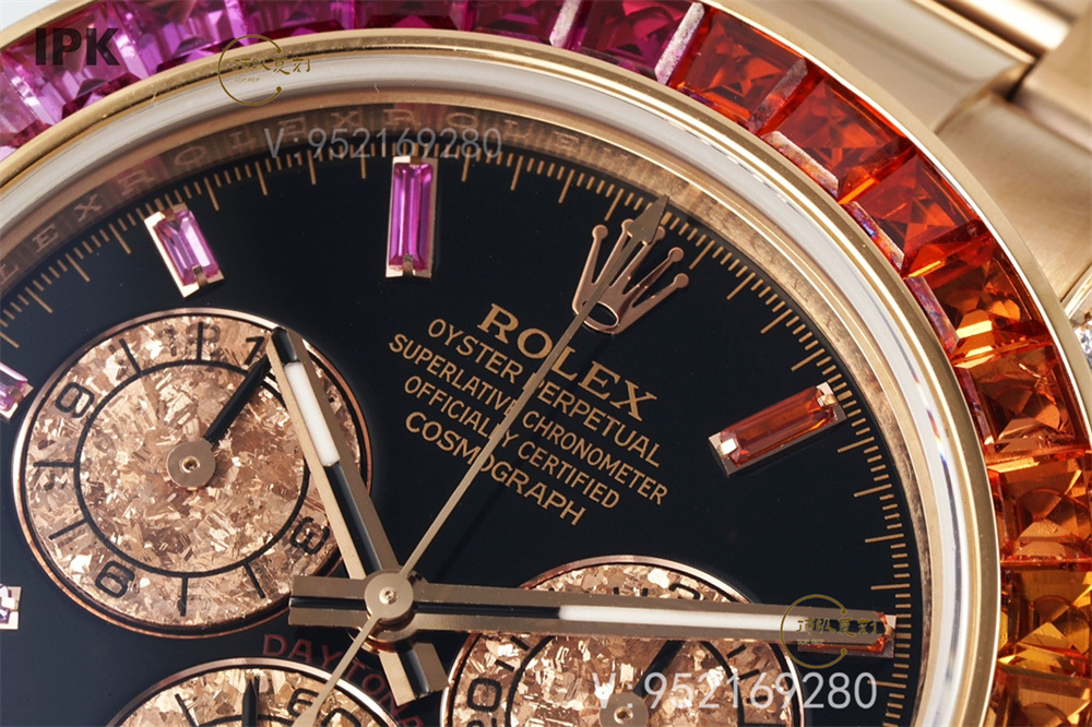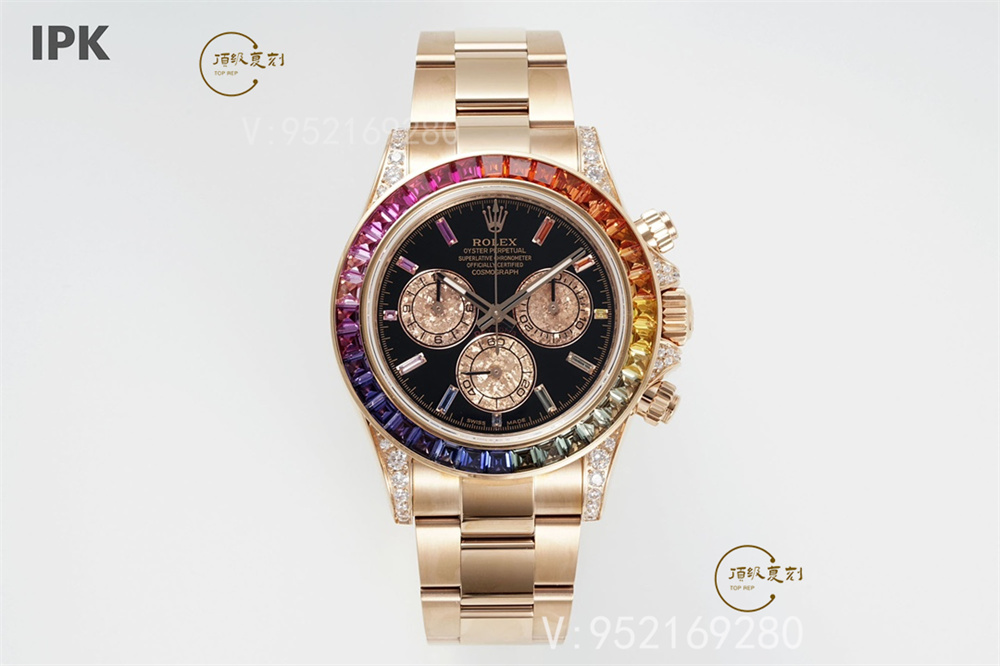 大家好,我是zs小編,今天給各位表友介紹一款正品非常熱門(mén)的款式,勞力士彩虹迪通拿后鑲鉆版本,這個(gè)款式問(wèn)的表友很多,不過(guò)銷(xiāo)量不是太理想,一個(gè)是這款表全金能夠駕馭的人很少,還有一個(gè)正品公價(jià)很高,復(fù)刻方面能夠做的好的不多,像大部分工廠都是用的7750機(jī)芯復(fù)刻的,也有定制的4130機(jī)芯版本,但是一般表友也不會(huì)去入手,價(jià)超過(guò)了1萬(wàn)了,而且有些細(xì)節(jié)處理的還是沒(méi)有大工廠貴,售后也麻煩,所以小編基本沒(méi)有推薦過(guò),這次IPK廠也是全新推出4130機(jī)芯版本的彩虹迪通拿,廠家配件都是齊全,做工方面也是非常不錯(cuò)的,之前IPK廠就一直和N廠有合作,殼套配件都是一樣的,售后的話有工廠出現(xiàn)問(wèn)題也方便處理,當(dāng)然最重要的還是價(jià)格大大降低,很多表友都可以接受了。