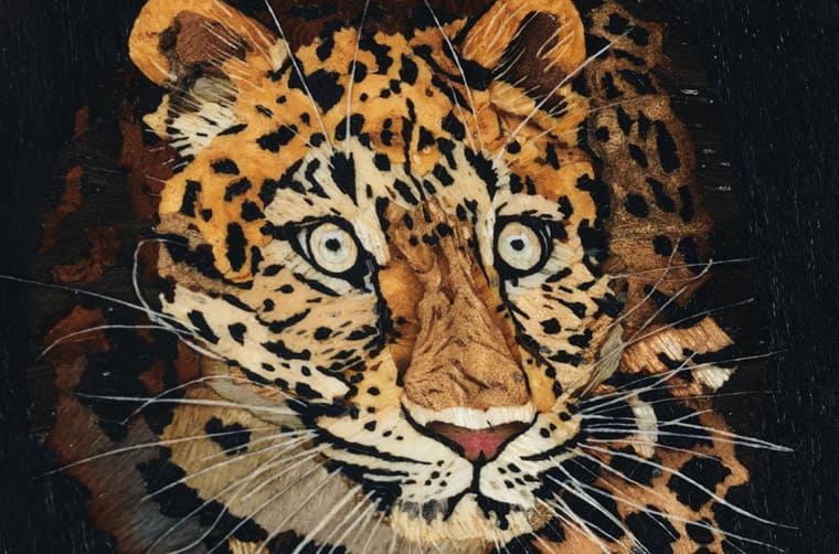 ▲以細木鑲嵌拼綴成懷表背面的捷豹圖案。