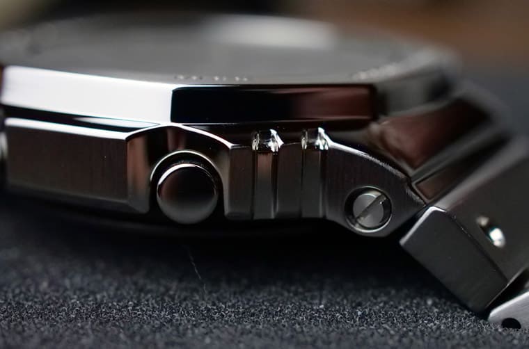 ▲表圈、表殼與鏈帶以多重加工修飾塑造出富有層次感的外觀,展現金屬的誘人質感。