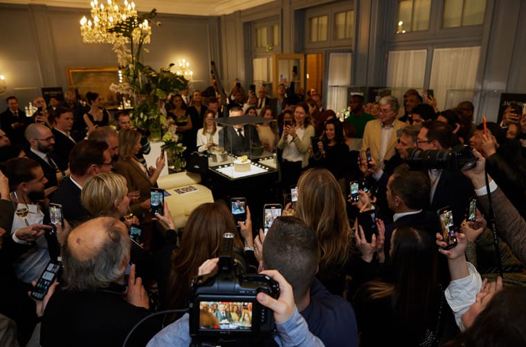 ▲Billionaire Timeless Treasure的日內(nèi)瓦發(fā)表會現(xiàn)場,聚集了大批媒體爭相目睹它的珠寶表王者風采。