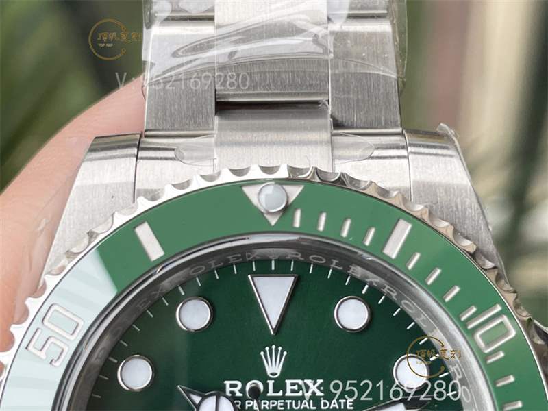 圈口:獨家clean v4版本的設計亮點就在綠色的把握上,和原裝圈口拿著對比,基本上沒有色差,是清脆的金綠色,?陶瓷圈夜明珠,是溫潤如玉夜光珠,不是死白色的,?clean陶瓷圈+夜光珠完美復刻原裝的?。像C廠的陶瓷圈夜明珠凸起剛剛好、是平整的不會高出來很多,別的廠夜明珠凸起高很多,如果夜明珠凸起來高很多是不對版,所以大家可以通過夜明珠去分辨。單向旋轉的陶瓷圈口,聲音非常的清脆。轉動一圈是120個卡槽點,可以根據聲音去判斷。還有一個重要的細節點,夜明珠對準12點位置,向左旋轉10下(根據聲音來判斷),夜明珠的位置一定是停在十一點刻度位置。