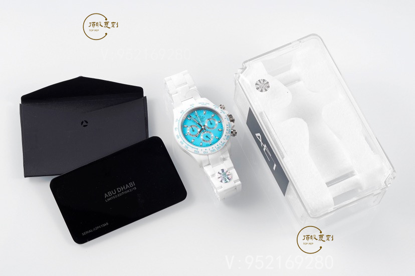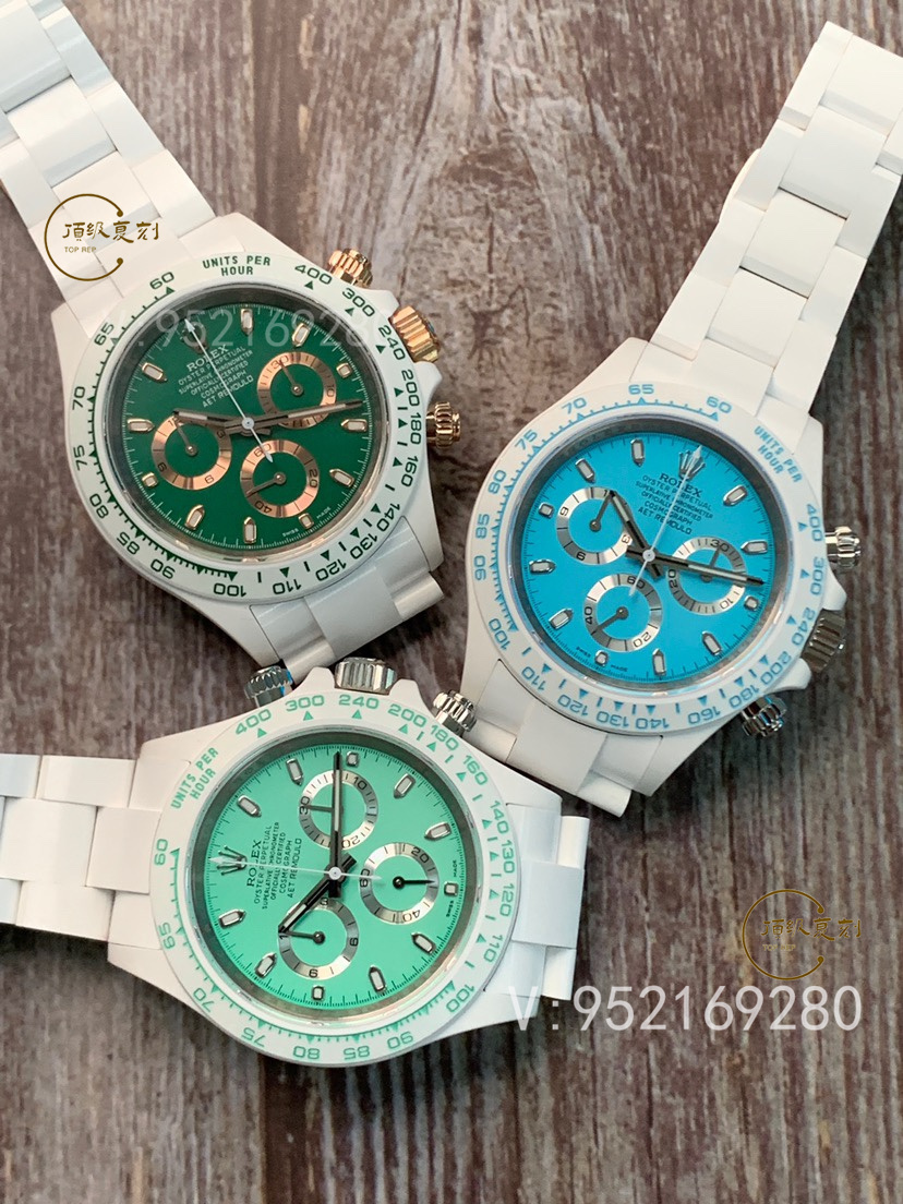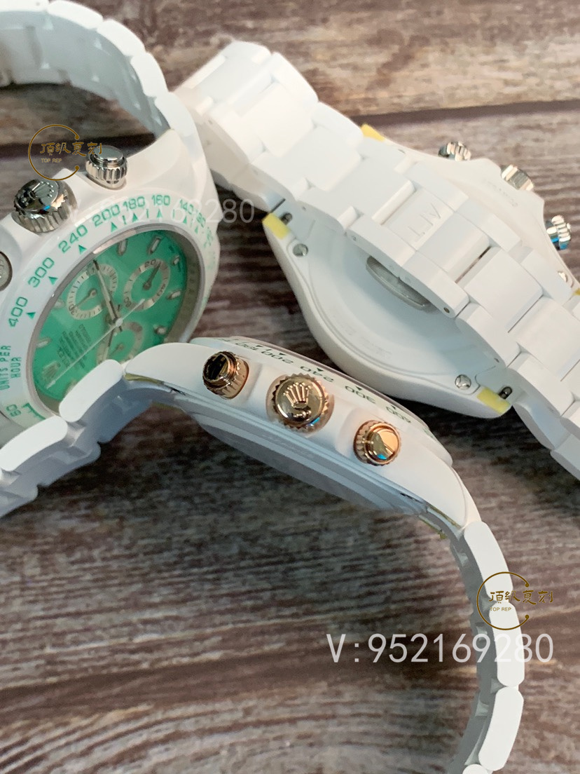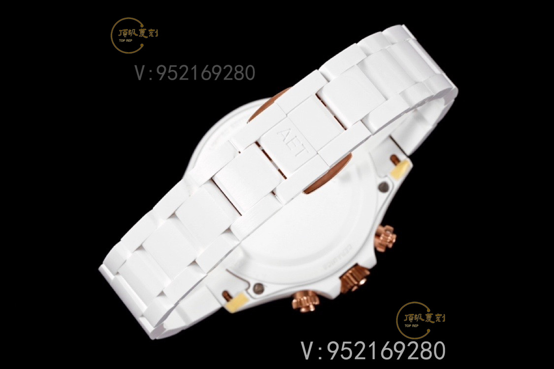 大家好,我是zs小編,今天給大家介紹一款改裝勞力士迪通拿產(chǎn)品,是AET廠近期推出的白色陶瓷迪通拿,內(nèi)部搭載的同N廠一樣的丹東4130機(jī)芯,這款機(jī)芯在N廠被查以后也算是半放開了,很多工廠都能拿到。AET廠也是一個(gè)新工廠了,這次的迪通拿外觀做的非常精致,陶瓷的表殼、表帶、扣,下面看看這款表做工評(píng)測(cè)吧!
