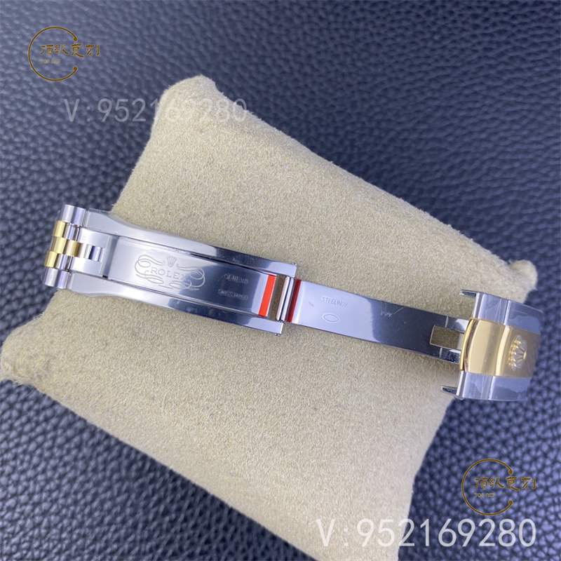 這款vs廠勞力士日志36mm的還原尤為到位,那種極具誘惑力的設計非常的抓人眼球,36毫米的一個尺寸看起來很嬌小,但實際上駕馭的難度非常的低!不只是男士可以佩戴駕馭,不少的女士也可以! 視覺魅力直接拉滿!在材質方面,這次的手表采用的是經典的904鋼,精鋼材質與玫瑰金的層次感,讓其相比于其他看是多了一抹華麗感,手表對于整體手表的拋光處理非常到位,使得手表非常亮眼,鏡面搭配為經典的藍寶石鏡面,鏡面方面的通透性很為強大同時對于鏡面內里也是進行了電鍍,從而增加了腕表的通透力度,對于鏡面六點位置,也是有涉及到防偽標識,內影處的刻字也是很具清晰!刻度為羅馬數字不僅美觀,而且很容易辨認羅馬表盤通常會給種高貴、典雅的感覺