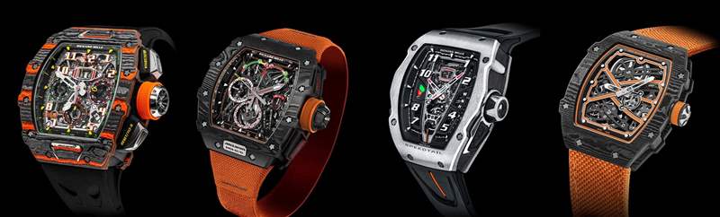 過去的幾年中,RICHARD MILLE 與 McLaren 邁凱倫品牌先后合作推出了3只腕表,包括采用 Carbon TPT?碳纖維材質的?RM 11-03 McLaren 自動上鏈飛返計時碼表,使用 Graph TPT?石墨烯碳纖維材質的超輕陀飛輪?RM 50-03 McLaren 雙秒追針計時碼表,以及水滴型表殼致敬 Speedtail 跑車的?RM 40-01 McLaren Speedtail 自動上鏈陀飛輪腕表。除此之外,邁凱倫 F1車隊的車手們還佩戴了邁凱倫配色的?RM 67-02 超薄自動上鏈腕表。