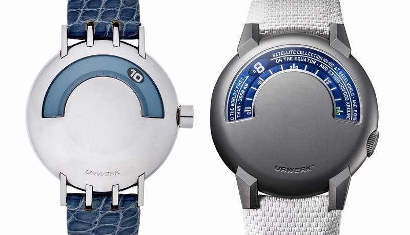表盤延續標志性的「衛星指針」布局,通過旋轉的小時數字窗搭配扇形分鐘刻度盤顯示當前時間,扇形表盤窗的兩端為更傾斜的線條,刻度外圈銘文則致敬 UR-102 腕表的發布歷史。