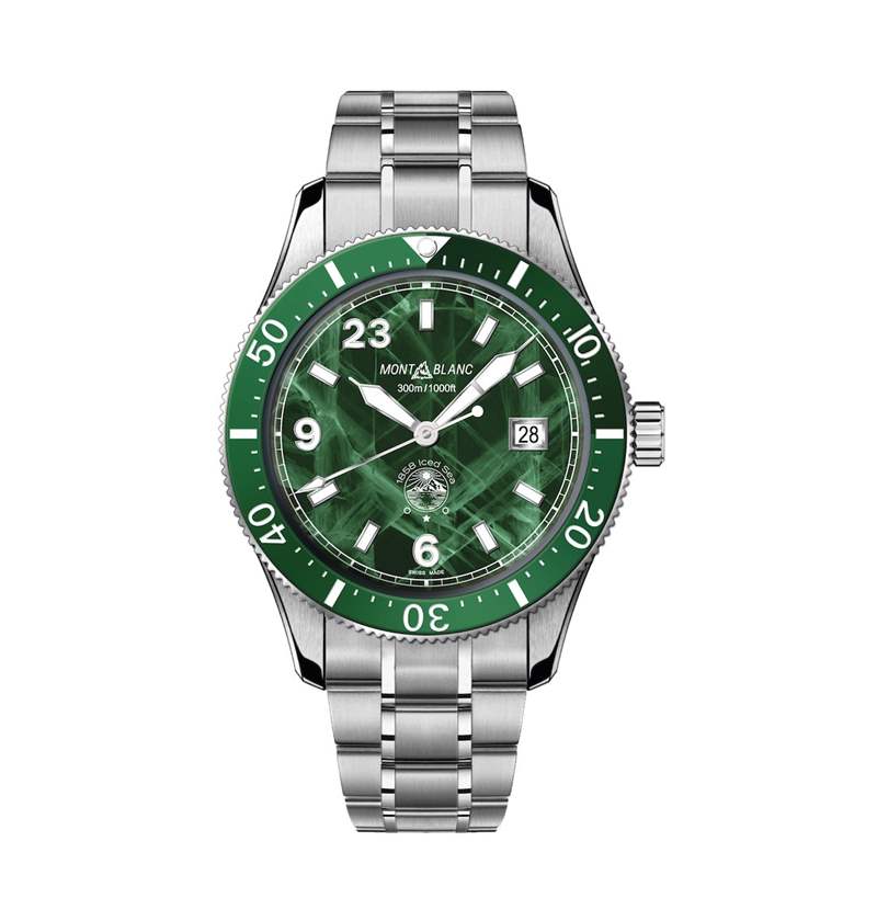 Montblanc?剛剛推出一枚限量版作品——「1858 Iced Sea Limited Edition FWC」潛水腕表,特別之處是綠色表盤11點時標被替換為數字「23」,代表這枚作品推出于2023年。