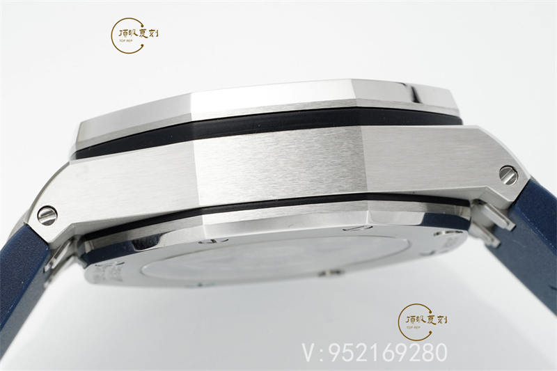 腕表側(cè)面也是進(jìn)行了打磨,質(zhì)感很棒,當(dāng)然也不會(huì)有刮手的感覺,注意腕表右側(cè)則是為時(shí)間把頭,可能會(huì)把頭割手,這也是不能避免的,畢竟腕表的尺寸有這么大了!右側(cè)則是為功能把頭,功能與計(jì)時(shí)表功能一致,右上為計(jì)時(shí)開始與停止按鈕,中間是時(shí)間把頭,右下則是計(jì)時(shí)針歸位按鈕,對(duì)于功能方面則是與原版一致。另外對(duì)于計(jì)時(shí)表而言,在后期使用過程中,盡量少使用。避免增加機(jī)芯的負(fù)荷力度,同時(shí)使用功能時(shí),按鈕力度不需要太大,因?yàn)槔锩鎰t是一個(gè)彈簧裝置,避免損壞腕表,然而對(duì)于配件方面的搭配,此次工廠的打磨細(xì)節(jié)還是很為不錯(cuò),中間把頭AP標(biāo)志也是很為清晰立體!