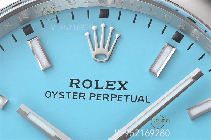 C廠勞力士蠔式恒動在逐漸齊全中,目前推出的是36mm尺寸,采用的是904精鋼材質,同步原版,表殼做工細膩,拋光拉絲工藝相結合,都是C廠水準。鏡面采用的是高品質藍寶石鏡面,通透度很高,耐磨耐刮,注意別磕碰。盤面以蒂芙尼藍為例,顏色調配還是很不錯的,比較起來C廠和VS廠的顏色調配都會比EW廠更好一些,尤其是一些盤面顏色比較特殊的款式,比如這個蒂芙尼,EW廠顏色是會略深的,而C廠和VS廠則更為準確無色差。