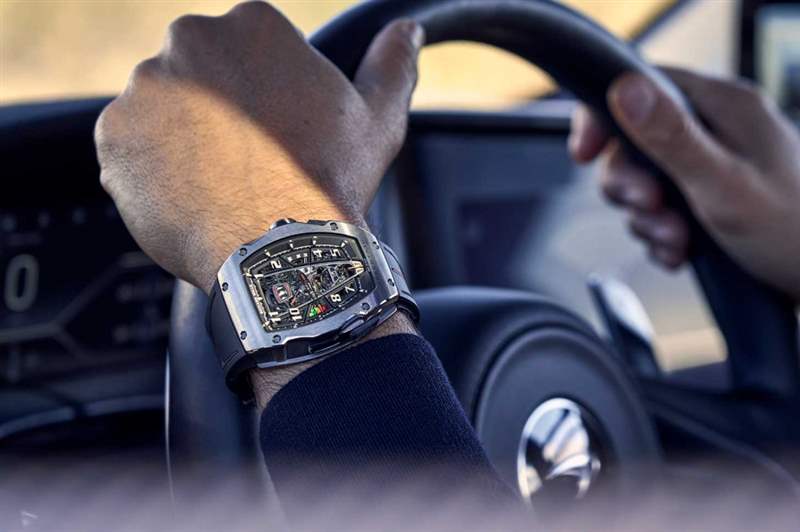 腕表的表圈及表蓋采用五級鈦金屬,中層表殼則是TPT碳纖維,表圈上的凹槽借鏡超跑引擎蓋的開孔,而按鈕設計也參照了超跑前輪后方的出風口。Richard Mille亦特別加入獨特的細節設計,6時位置可見McLaren標志性的橙色條紋,更一直延伸至橡膠表帶,模仿Speedtail后擋風玻璃的垂直煞車燈。