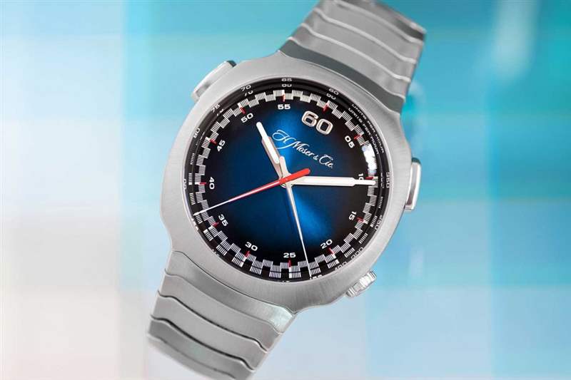 而另一款Streamliner Flyback Chronograph Automatic Funky Blue,則以H. Moser & Cie. 標(biāo)志性的電光藍為表盤主色調(diào),而作為一枚飛返計時表,都是非常獨特搶眼!同時間,H. Moser & Cie.將可讀性放在第一位,以紅色及白色刻度環(huán)繞電光藍表盤邊緣,外側(cè)軌道測量秒數(shù),內(nèi)側(cè)軌道則計算分鐘數(shù),亦特別采用紅色秒針,分針則是鍍銠,令人輕易閱讀計時,望著秒針在Funky Blue的表盤上旋轉(zhuǎn),也是一種樂趣!