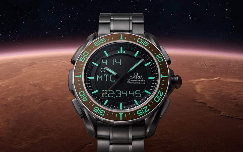 超霸 X-33 Marstimer 腕表由歐米茄與歐洲航天局(ESA)聯(lián)合打造,專為火星探索而設(shè)計(jì),能夠在地球和火星上的任意地理位置精準(zhǔn)顯示真太陽時(shí),其太陽羅盤精準(zhǔn)地指示出地球上和火星上的正北方向。它還能夠顯示火星的太陽經(jīng)度以及三個(gè)不同位置(本初子午線 + 兩個(gè)由使用者自定義的位置)的平太陽時(shí):與火星太陽日比地球太陽日長2.7%的規(guī)律相符。經(jīng)典的黑色表盤可以清晰地顯示多種指針和電子數(shù)字讀數(shù),通過地球和火星符號可以更加明顯區(qū)分出腕表正在使用哪種特定的功能。