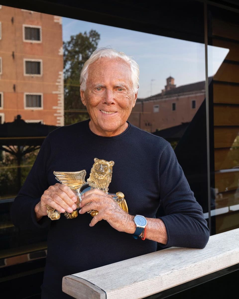 ▲Giorgio Armani先生近期獲威尼斯市長頒發(fā)穆拉諾玻璃金獅獎,表彰他在事業(yè)上的成就。Source:Twitter @armani