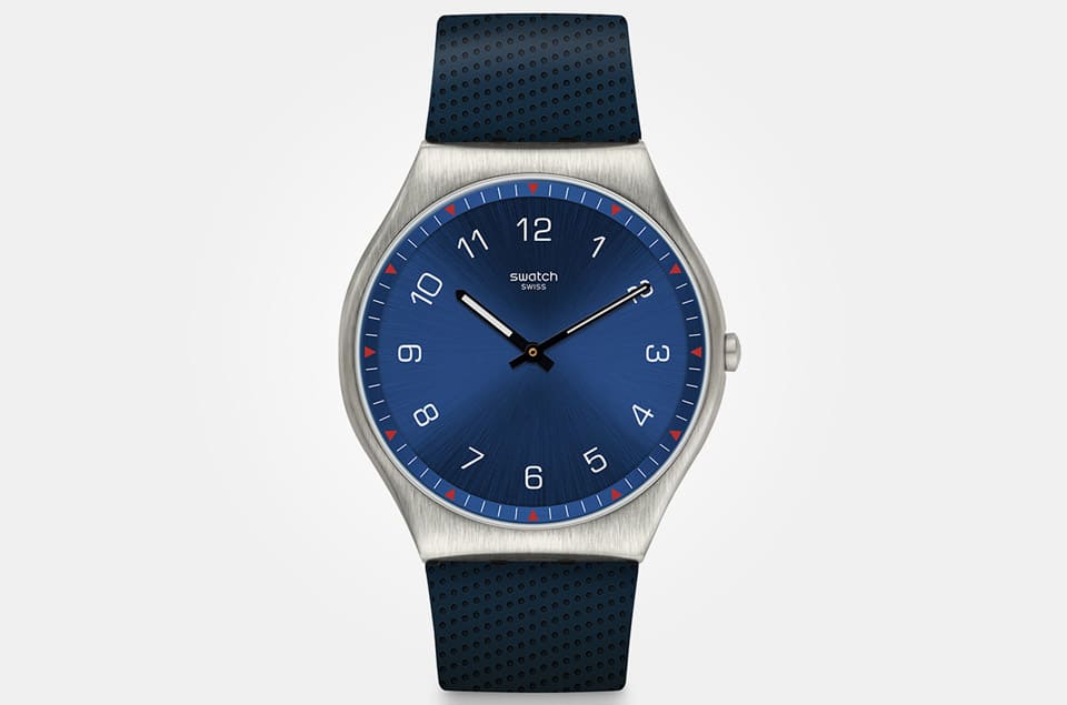 實際定價是6,050臺幣的表甚至比EMPORIO ARMANI多數(shù)手表都還要便宜一些,原來Giorgio Armani先生這回戴的是SWATCH的SKIN Irony 42 Navy這款深藍(lán)色二針石英表,這款表采用不銹鋼材質(zhì),表徑42mm戴在手上存在感很強,搭配深藍(lán)色橡膠表帶以及深藍(lán)色面盤,面盤外圍刻度每5分鐘采用紅色的倒三角形設(shè)計,與白色的阿拉伯?dāng)?shù)字時標(biāo)、黑色指針搭配既能清楚顯示時間,也讓手表看起來多了點視覺變化,其實我們也不太清楚Giorgio Armani先生為什么會戴這款表,至少深藍(lán)色應(yīng)該是很合他的胃口,加上石英表佩戴方便、走時精準(zhǔn),設(shè)計又很簡約,如果是純粹日常佩戴用來看時間,那么這款表顯然達(dá)到Giorgio Armani先生的要求與審美標(biāo)準(zhǔn)。