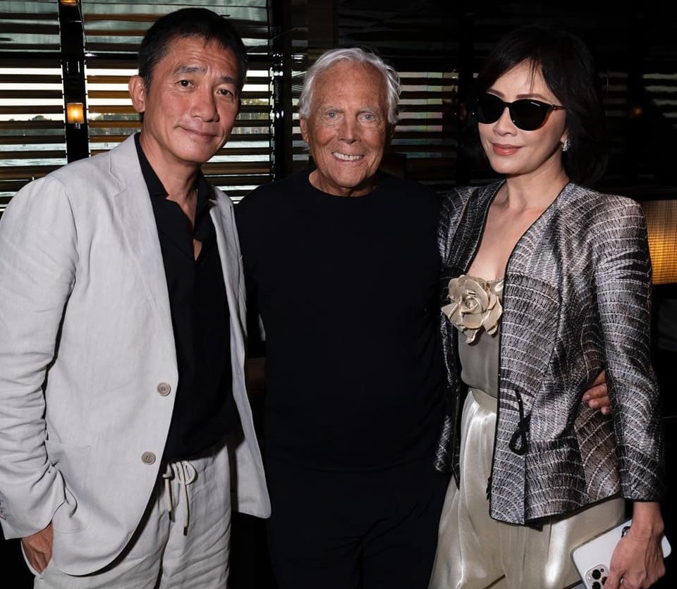 ▲梁朝偉與愛妻劉嘉玲和Giorgio Armani先生在威尼斯影展期間舉行的私人宴會上合影。Source:The Platform