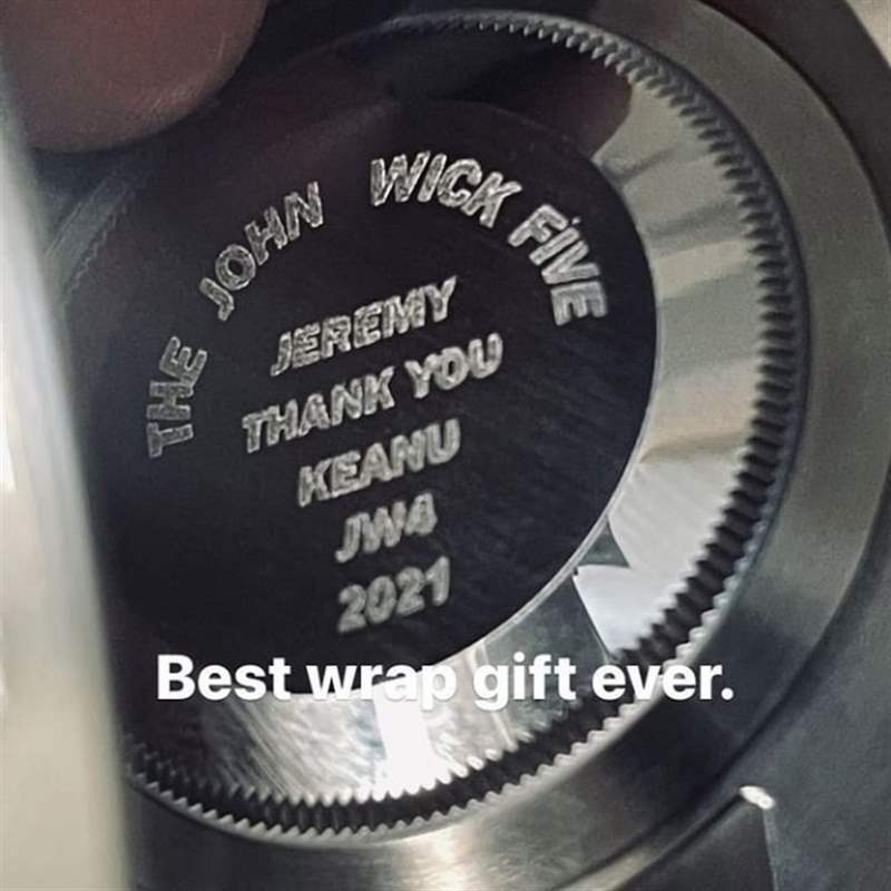 奇洛李維斯更細心地在表背刻上工作人員的名字、寫上「多謝」,更有署名及寫明是《John Wick 4》,最特別是有「THE JOHN WICK FIVE」的字眼,將攝制團隊真正的以團隊去看待,更有豐厚的額外回報,奇洛李維斯絕對是一名值得欣賞的演員!