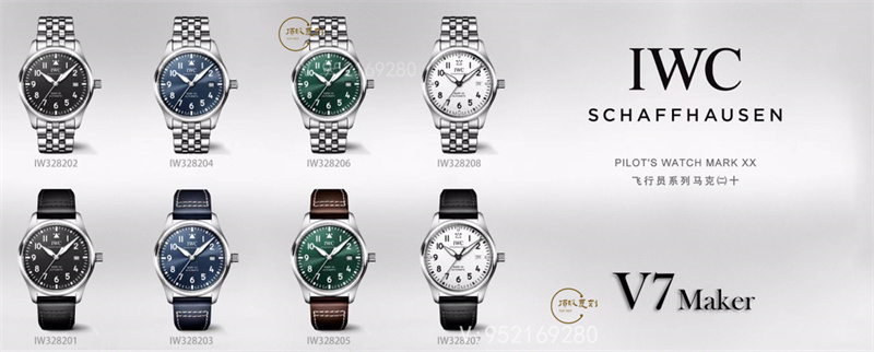 對于此次腕表字面方面來說,此次腕表在顏色方面就有黑色,綠色以及藍(lán)色這三個顏色,當(dāng)然此次顏色方面也是去還原了原版細(xì)節(jié),此次V7廠也是捷足先登了,繼馬克18后,此次20的開模,也讓腕表達(dá)到了全新的設(shè)計風(fēng)格!刻度和時標(biāo)依然保持白色印制工藝,與馬克18的區(qū)別增加了3、6、9、12時標(biāo)的長度,夜光條變化成夜光圖層,阿拉伯?dāng)?shù)字時標(biāo)則整體向表盤中央靠近,12點“IWC”標(biāo)志略微上移,三角刻度也改為水滴夜光呈現(xiàn)全新的視覺比例。