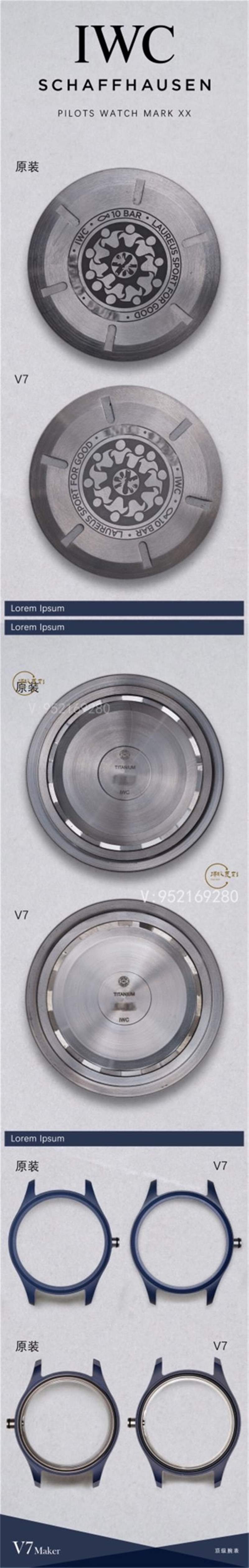 • 1. 原裝開模,真實對比。全身照V7對比原裝可謂毫不露怯,難辨雌雄,尤其是這一抹飛行員專屬的質感藍,顏色還原竟絲毫不差分毫。行業內唯一做到整表顏色一致同步原裝。