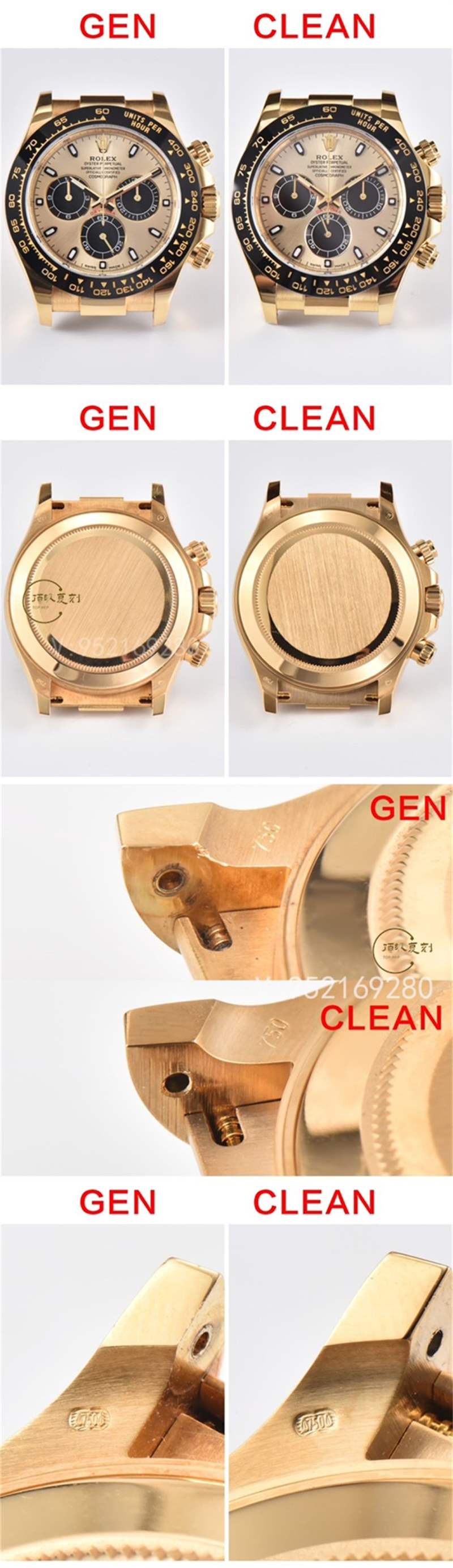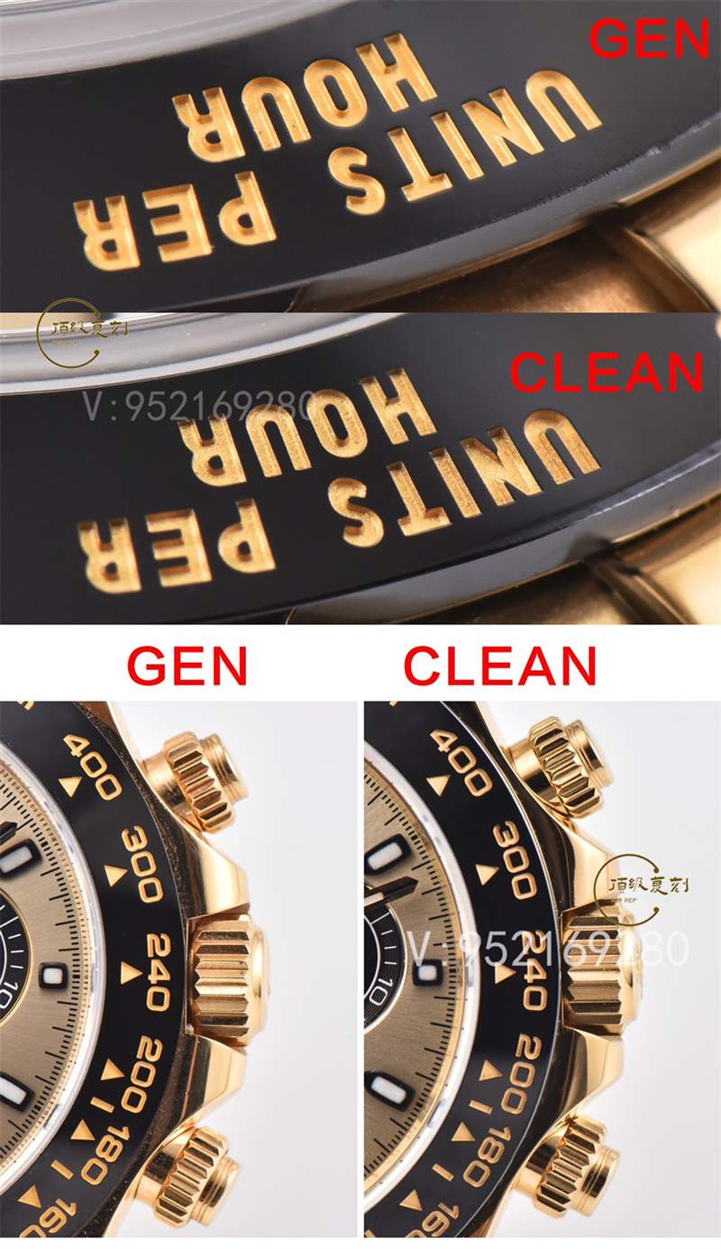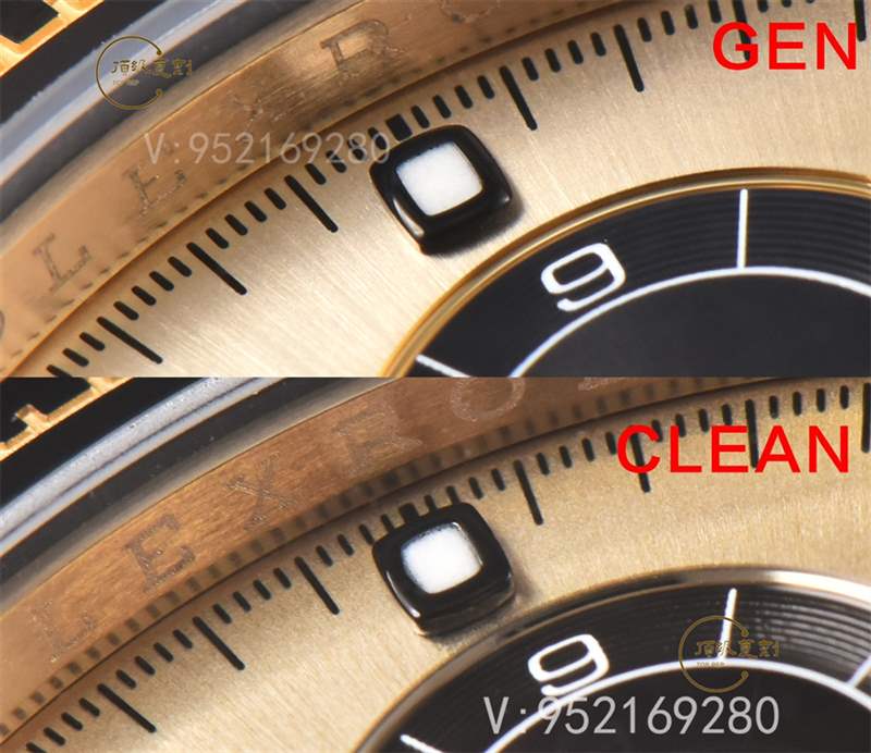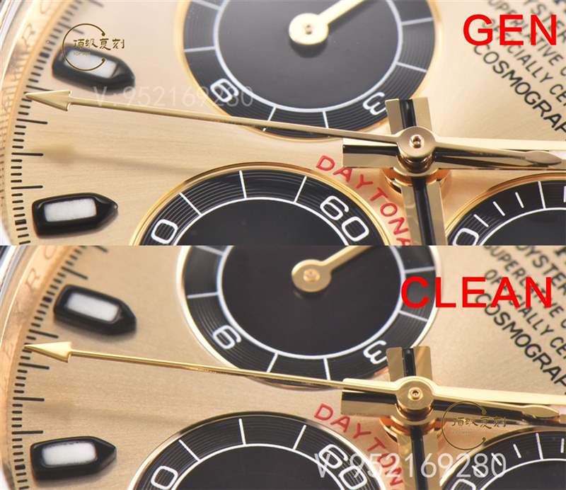 在字面方面來說,此次CLEAN廠進(jìn)行了重新定義,顏色方面也是極致的達(dá)到金色為主,同時對于顏色方面也是進(jìn)行了真空pvd電鍍,并非普通的噴油調(diào)色,pvd好處在于電鍍層可以控制在2-4um微米。不以及計(jì)時小眼圈的中間黑色大陽紋以及邊緣d紋完全按照真品一比一開模,對于整體細(xì)節(jié)方面也是做的很靠譜!手表的表面顏色非常接近于原來的細(xì)節(jié)!