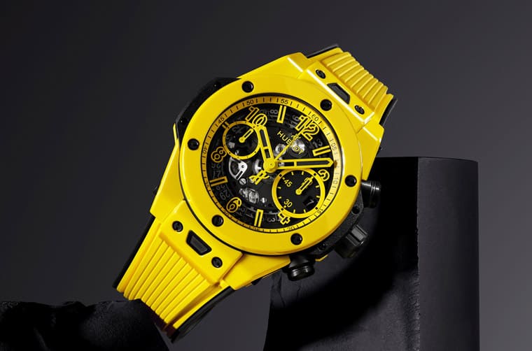 提到魔力黃陶瓷,它屬于宇舶獨(dú)家的高科技亮彩陶瓷,要制作出這種顏色的材質(zhì)需采用三項(xiàng)專(zhuān)利創(chuàng)新技術(shù)、由品牌物質(zhì)研發(fā)部門(mén)與冶金材料實(shí)驗(yàn)室,耗費(fèi)四年取得溫度與壓力的平衡,加上宇舶特別研發(fā)的配方,塑造出擁有1350維氏硬度的堅(jiān)實(shí)陶瓷材質(zhì)。以亮彩黃陶瓷打造的42毫米計(jì)時(shí)碼表,搭配上黃色立體橡膠表帶,佩戴在手上很難不引起注意,由一代球王喬科維奇親自佩戴演繹,完整呈現(xiàn)了亮黃色的大器王者風(fēng)采。