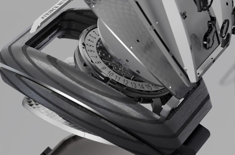 ▲#FR2NCK MULLER Vanguard限量版表殼采用玻璃碳纖維復合材質制作,其表面的隨機紋路賦予手表獨一無二視覺感受。