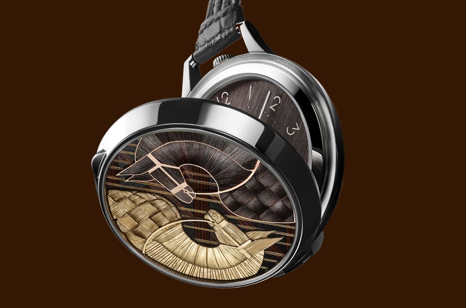 HERMèS愛馬仕除了制作高級手表,迄今他們也仍保有研發懷表的傳統,2023年品牌創作出一款Slim d’Hermès Pocket Masan-Masan工藝懷表,手表以白金材質制作,并結合馬鬃細工鑲嵌與手工雕刻工藝于懷表表蓋呈現一對英姿勃發的駿馬圖案,讓人還沒掀開表蓋就已經對品牌的裝飾工藝水準深感欽佩。