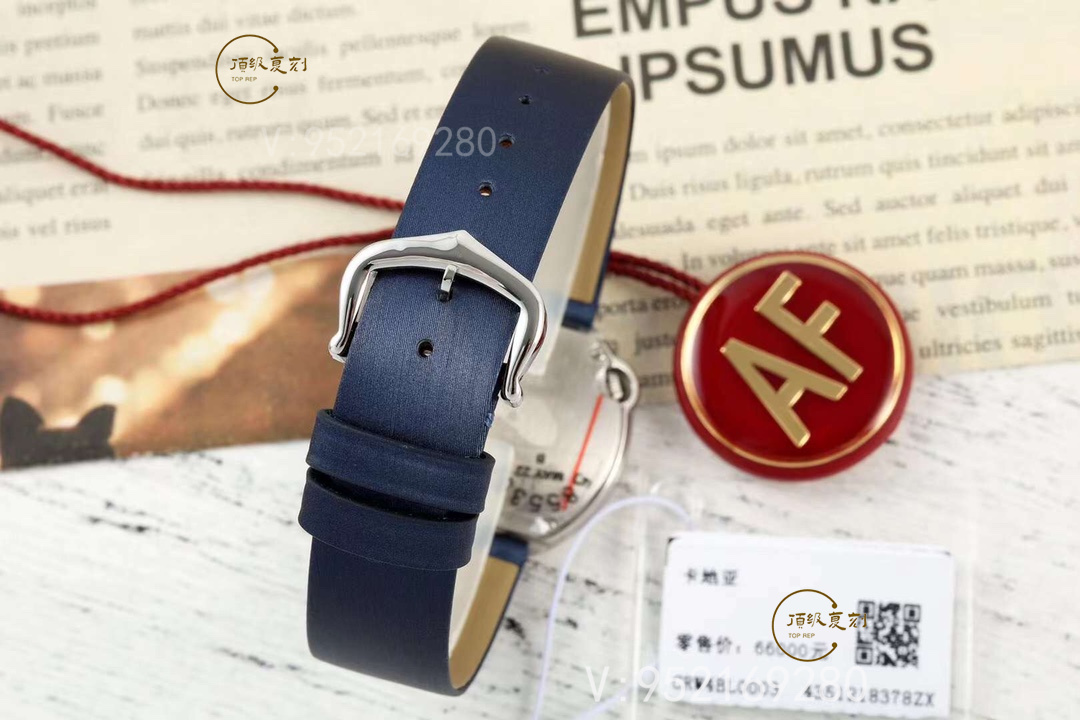 表盤與指針 表盤采用鍍銀磨砂材質,在光線的照耀下散發出柔和而迷人的光澤。劍型指針的設計簡潔而高貴,與表盤相得益彰,展現出Cartier對美學的深刻理解與不懈追求。