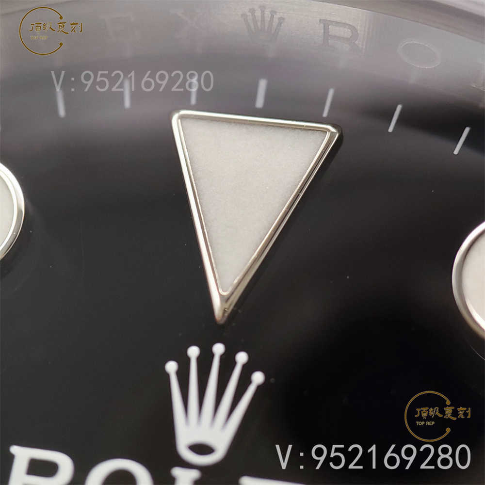 二、精湛的外觀工藝 VS廠在外觀工藝上持續保持高標準。表鏡采用藍寶石玻璃,提供清晰的視覺效果。表盤采用純黑漆面,字體印刷立體飽滿,展現了油壓印刷技術的精細。刻度的圓角倒角打磨,以及中軸和指針的清潔處理,都體現了VS廠對細節的極致追求。