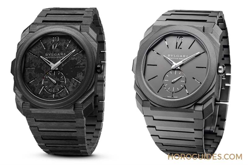 寶格麗在問響腕表領域的精彩表現,延伸至多個系列,包含超薄形象深植人心的Octo Finissimo系列。自2014年推出Octo Finissimo超薄系列以來,寶格麗憑借著這個屢屢打破超薄世界紀錄的系列,奠定了表壇超薄至尊的地位。在2016年首度發表的Octo Finissimo超薄三問腕表,以噴砂鈦合金打造;于2021年推出碳薄層版本,以CTP碳薄層和PEEK 高分子聚合物打造的表殼與鏈帶,呈現出啞光質感的獨特紋路,堅硬輕盈,表款僅重47克。為保持整體造型輪廓的前衛俐落感,報時裝置的啟動按把設置于表耳,無損平衡對稱的美感。