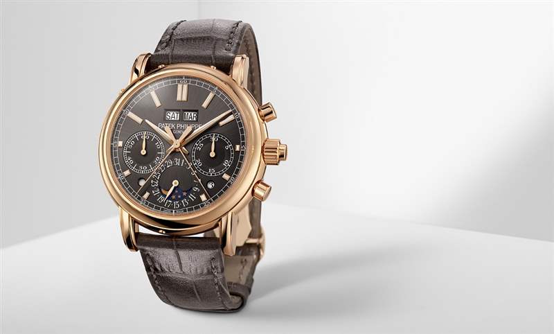追針計時以及萬年歷分別代表計時功能與日歷功能的最復雜等級,也因此同時兼具這兩項功能的百達翡麗5204在藏家心中特別具有重要性與代表性。這樣一個重點型號現推出玫瑰金材質新色面盤,為市場再添夢幻款式,此編號首次將貴金屬與深灰表面和表帶結合,為這款經典時計帶出全新風貌,呈現現代灰面新色的玫瑰金款式。5204于2006年首度以玫瑰金打造,當時共推出兩款玫瑰金款,其中5204R-001搭配銀調乳白色表面和巧克力咖啡色鱷魚皮表帶,另一款5204/1R配以乳光黑檀木色表面和玫瑰金Goutte水滴型表鏈。