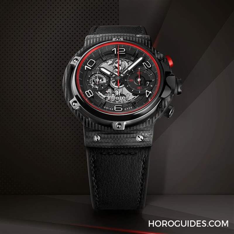 Peter:紅色黑色像我剛講的第一眼就會被這個配色吸引,材質3D碳纖維,這是美軍也有在用的材質,所以非常酷,里面也是Unico飛返機芯,它這個計時碼表,紅色這個針,你讓它走的時候,歸零的時候,你可以看到上面刻紋非常細膩,完完全全就在12點的正中央,這是一個機芯做的非常精準的一個,很棒的指標,同時它的觸感,很多計時碼表其實老實講我自己覺得觸感真的太硬了,宇舶的計時碼表機芯不管是拿著戴在手上,操作就是非常非常舒服,很簡單按起來是一種開心的感覺。