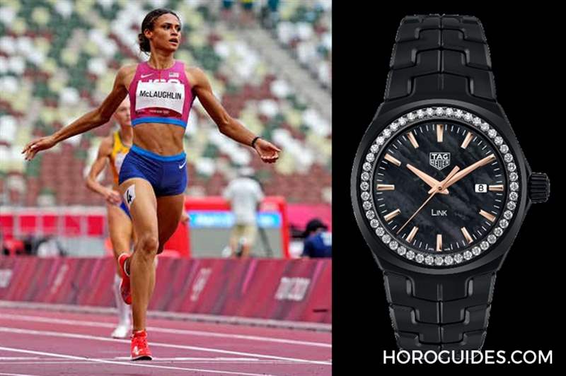 在她拿下金牌的這場跨欄賽中,她配戴著Tag Heuer Link腕表上陣,32mm表徑的陶瓷表殼,表圈鑲飾一圈鉆石,是一只已絕版的限量表款。田徑場上,戴鉆表上陣真的少見,而她戴起來真心好看。
