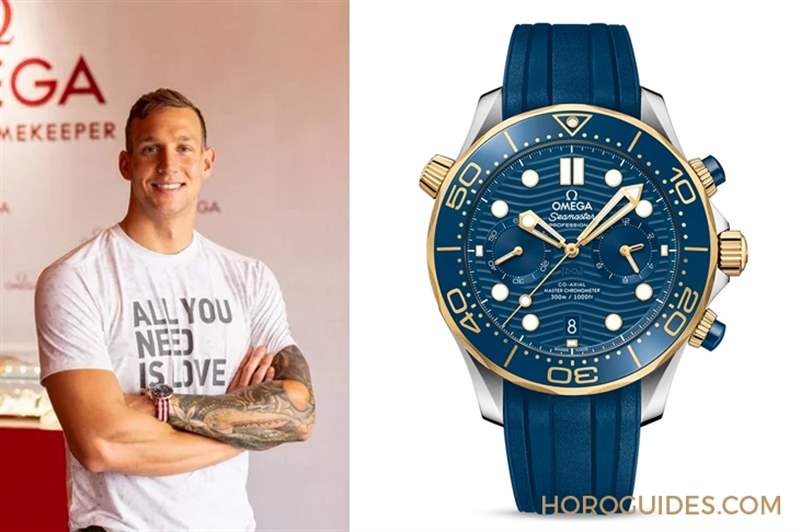 美國游泳運動員Caeleb Dressel是2020東京奧運的大贏家,勇奪5面金牌。在剛拿下如此傲人成績之際,馬上被OMEGA網羅為品牌大使,應邀參觀OMEGA形象展館時,試戴了OMEGA海馬300米同軸擒縱大師天文臺計時碼表,而且還體驗了此表系可快捷表帶、隨時變換風格的魅力。