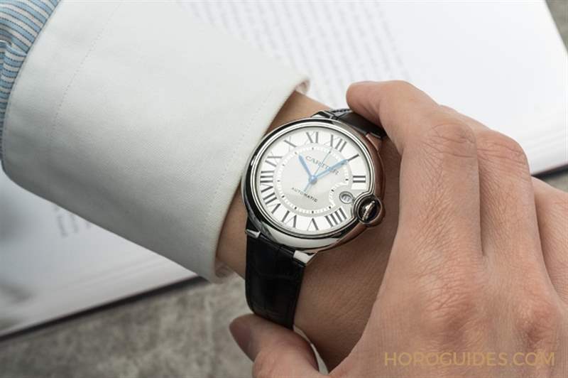 Peter:像卡地亞它傳統(tǒng)的Tank、SANTOS,它的角度是比較方形表,角度比較犀利一點(diǎn)點(diǎn),藍(lán)氣球完全不一樣,它外面亮面非常柔和,非常圓弧的設(shè)計(jì),再加上它的鏡面有點(diǎn)弧度的,有點(diǎn)拱起來(lái)的弧度,讓時(shí)間上的流動(dòng)非常優(yōu)雅。