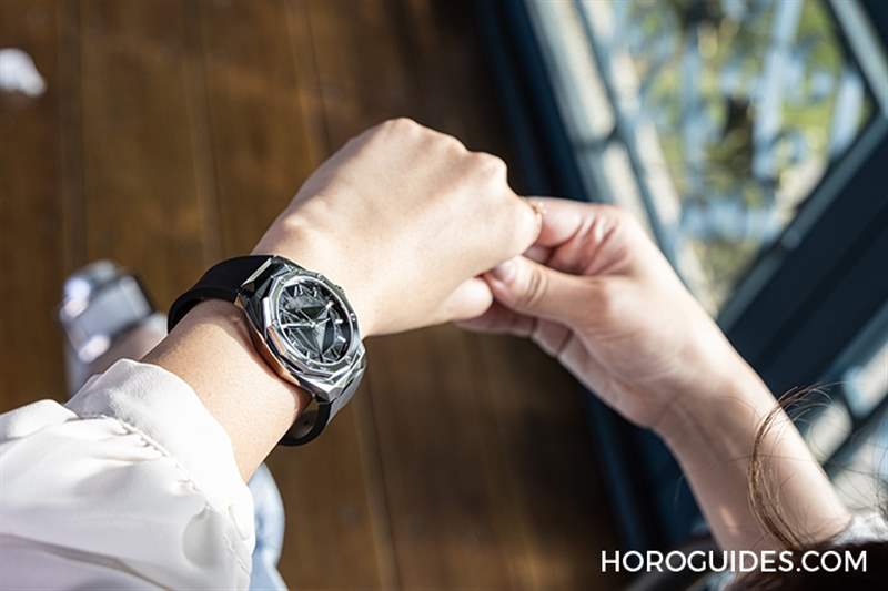 Suzy: Hublot在于跟藝術(shù)家的做結(jié)合的時(shí)候,他們都很信任藝術(shù)家,讓他們很自由去發(fā)揮,像這表款是完美呈現(xiàn)Orlinski的個(gè)性,他的作品也是這樣,有棱有角、光影折射下的感覺(jué)都不一樣。