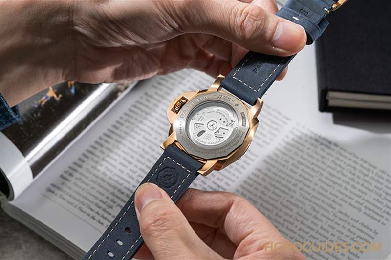 另一個品牌沒有特別強調的重點,則是青銅合金材質的調整。跟前3代的青銅表一樣,PAM 1074采用的青銅種類還是錫青銅。一般來說,錫青銅的合金成分除了銅,以及3%~14% 的錫之外,還會加入磷、鋅、鉛等金屬成分,具有耐磨、抗蝕等非常不錯的金屬特性,一般用在軸承、齒輪等容易磨損,或在海水高腐蝕性環境使用的船舶零件上。這也是沛納海前三代的青銅表使用的青銅材質,不過根據品牌表示,所使用青銅合金中鉛等污染性重金屬含量,在每一代的表款中都有調整而且持續降低,到了今年PAM 1074所使用青銅合金的鉛含量已經幾乎沒有了(只剩不到90 ppm)。這個調整雖然可能對金屬的耐磨度會有一些影響,不過可以避開重金屬污染的問題。目的就是為了從過去的軍用儀器的轉型,進一步強化品牌和海洋環境保護的連結。