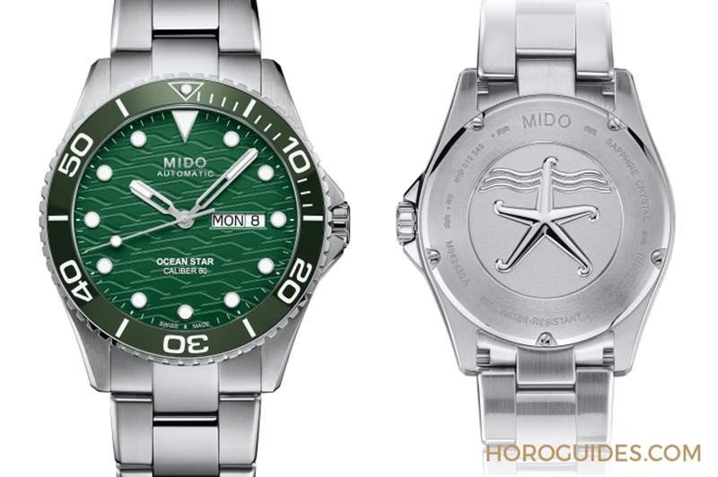 全新海洋之星200米陶瓷圈腕表運用陶瓷材質,具堅硬耐磨、防刮和耐高溫等特點,提供配戴者長期穩定的保障,為腕表帶來更高的性價比。MIDO全新嘗試在表盤和陶瓷表圈采用了明亮的綠色,呈現強烈色彩的視覺沖擊,且藍寶石水晶玻璃鏡面經過雙面防眩處理,可清晰欣賞表盤的張力色彩。霧面質感表盤刻有波浪紋,點明海洋之星潛水表的身份。搭載MIDO Caliber 80全自動機械機芯,動力儲存高達80小時。
