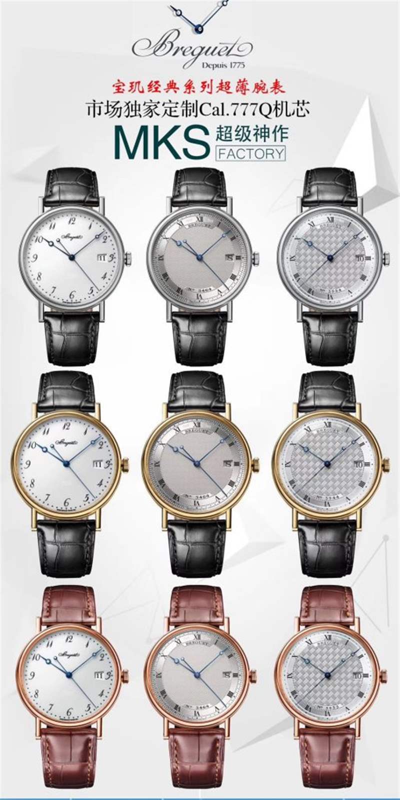 MKS工廠是同其他大工廠一樣,老板也是潮汕人,在這里不得不佩服潮汕人的創業精神,也不得不佩服潮汕人的勤勤懇懇,在潮汕,李嘉誠、馬化騰都是卓越的學習榜樣。目前仿表市場基本是潮汕人一統天下,來這里工廠老板全部都是粵語潮汕話。MKS工廠起來的時間比較早,可以說是高端手表的鼻祖,不過在起步之時做的并不是這一類手表,而是跟隨市場的潮流,做的稍微低端一些的手表,跟親戚幫忙做款。在13年之后復刻手表出現,一出來馬上被搶購一空,MKS工廠也開始著手布局這個市場,第一個款式就是萬國的馬克系列,也因此得名MK。18年全面升級了產品系列,從此改名MKS工廠。