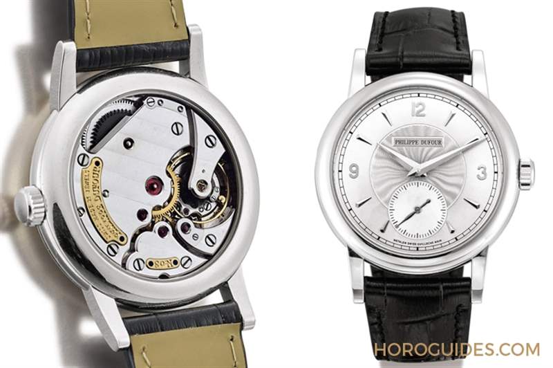 這件拍賣編號2152的拍品是首度被釋入拍場,委售者向Philippe Dufour親自購入,表盤中心飾以索紐紋,副表盤小為白色漆面,采用太子妃指針,機(jī)芯飾以日內(nèi)瓦波紋。