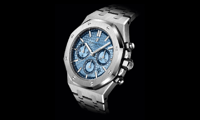 AUDEMARS PIGUET愛(ài)彼Royal Oak皇家橡樹(shù)系列推出全新自動(dòng)上鏈計(jì)時(shí)碼表,色調(diào)清新的淺藍(lán)色面盤(pán)格外引人矚目。這款表徑38mm的新作同樣延續(xù)皇家橡樹(shù)經(jīng)典的八角形表圈、表殼,兼具實(shí)用與裝飾性的六角形表圈螺絲,搭配淺藍(lán)色Grande Tapisserie大型格紋計(jì)時(shí)表盤(pán)。使用18K白金表殼搭配一體式鏈帶,與涂覆白色發(fā)光物料的時(shí)標(biāo)和指針。更重要的是,這款全新腕表僅限量100只。
