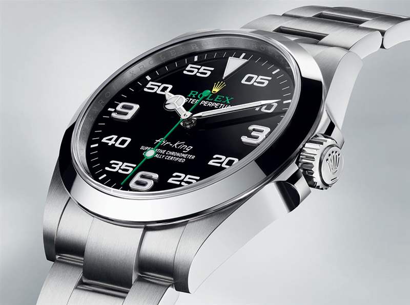 2022版本在這里和那里提供了一些變化,以提高性能和人體工程學,而不會改變其識別功能。首先,其直徑40毫米的蠔式鋼表殼,配備密封的底蓋,可浸入100米的深度,并進行了略微重新設計。它采用雙鎖表冠,由兩個加固框住,以增加保護和直表殼側面。它的表鏈也經過重新設計,中央連桿更大,并引入了帶有折疊式表扣和Easylink快速釋放擴展的安全蠔式表扣。黑色漆面表盤飾有阿拉伯數字和色光白金三角形標記,白色襯墊印刷分鐘軌道,5前方為0,視覺連貫性更高,一對時針/分針和勞力士綠色清漆秒針。自動上鏈機芯3230確保時間顯示,提供70小時強勁的動力儲存。