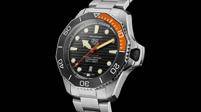 繼TAG Heuer(泰格豪雅)對其2021年潛水腕表進行更新后,該公司今年將推出專為探索深淵而設計的車身升級:Aquaracer Professional 1000 Superdiver。腕表配備精鋼表背和5級鈦金屬表殼,比Aquaracer Professional 300腕表厚度3毫米,寬45毫米。這些選項可確保腕表防水深度達 1000 米。此外,每一個細節(jié)都經(jīng)過精心考慮,以滿足ISO標準對飽和潛水腕表的要求。氦氣排放閥的存在進一步限制了上升過程中壓力的影響。此外,在由防滾桿保護的冠部,橙色印章警告是否明顯地擰入不良。所有光照條件下的易讀性也得到了優(yōu)化。綠色和藍色Super-Luminova? X1級腕表已應用于時尚表盤上的大標記、指針和單向旋轉表圈上的刻度。