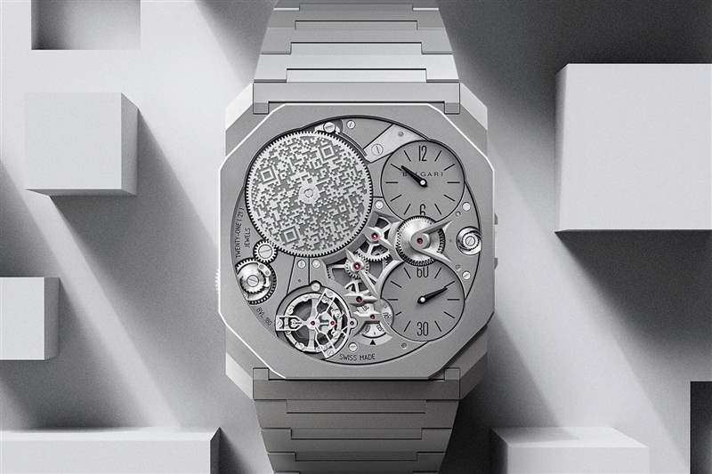 盡管它們很有趣,但這場周年紀念秀只有一顆明星,而且是最有限的 Octo Finissimo ULTRA,不僅僅是因為它的超薄特性,盡管這肯定最有可能成為頭條新聞。然而,它也非常精通技術 – 正如蝕刻在桶上的二維碼所示。
