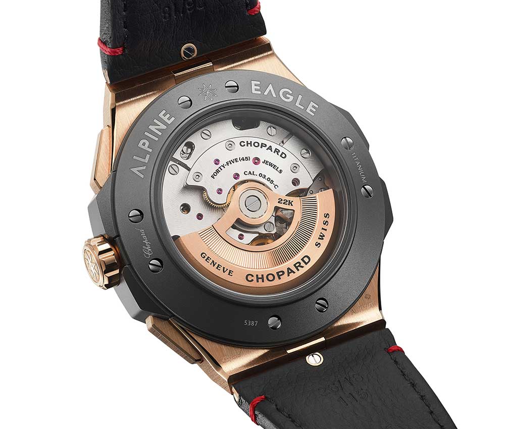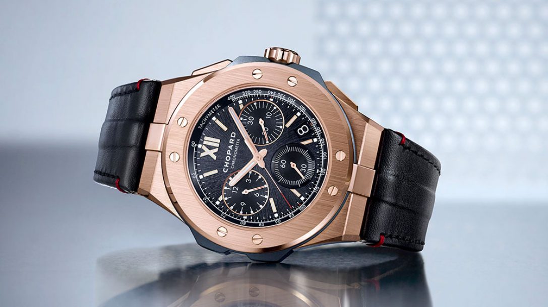與該系列中的其他表款一樣,Alpine Eagle XL Chrono表盤以其令人眼花繚亂的圖案呼應老鷹刺眼的虹膜而脫穎而出。為了進一步提升這個新版本,蕭邦選擇了一個優雅時尚的組合,與之形成完美的對比。簡而言之,如此深的黑色裝飾著時間數據,其色調與表殼的暖色調相當。我們發現了2020年推出的時尚運動系列所固有的場景設計。除了位于6點鐘位置的小秒針和“不能沒有時針”和“分針”二重奏外,這款腕表還分別在3點鐘和9點鐘位置顯示30分鐘和12小時小表盤。中央直接驅動確保精確測量時間。4:30 的日期光圈完成了合奏。一切都被鑲嵌在法蘭上的測速刻度包圍。