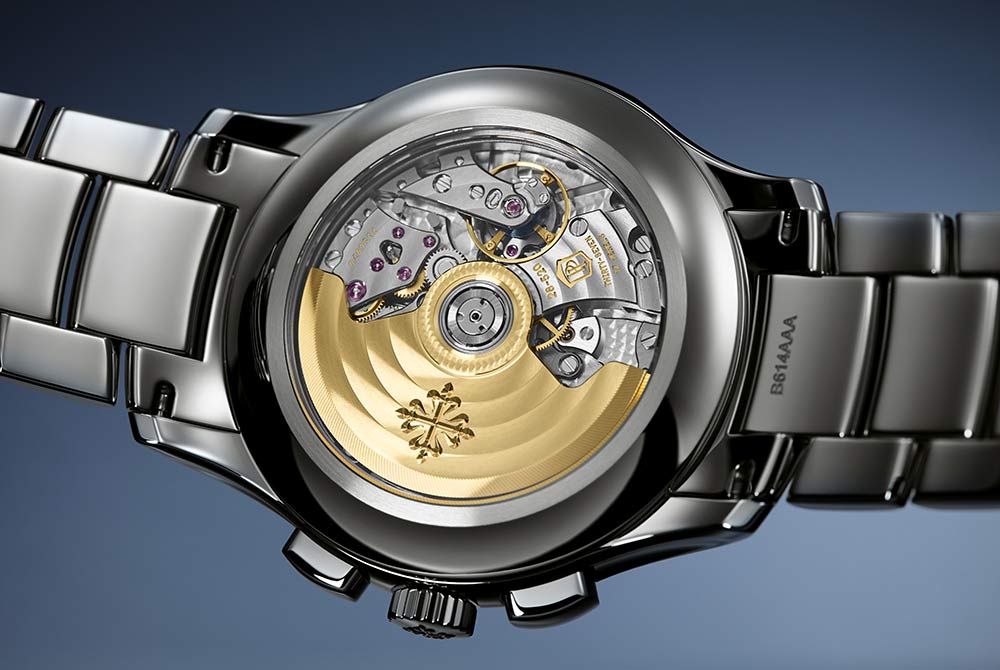 具有飛返功能的計時碼表搭載CH 28-520 QA 24H機芯。這種精密的機械裝置可產生約55小時的動力儲存。自動上鏈機芯的21K黃金擺陀,壓花有制造商的標志,透過藍寶石水晶玻璃表背清晰可見。