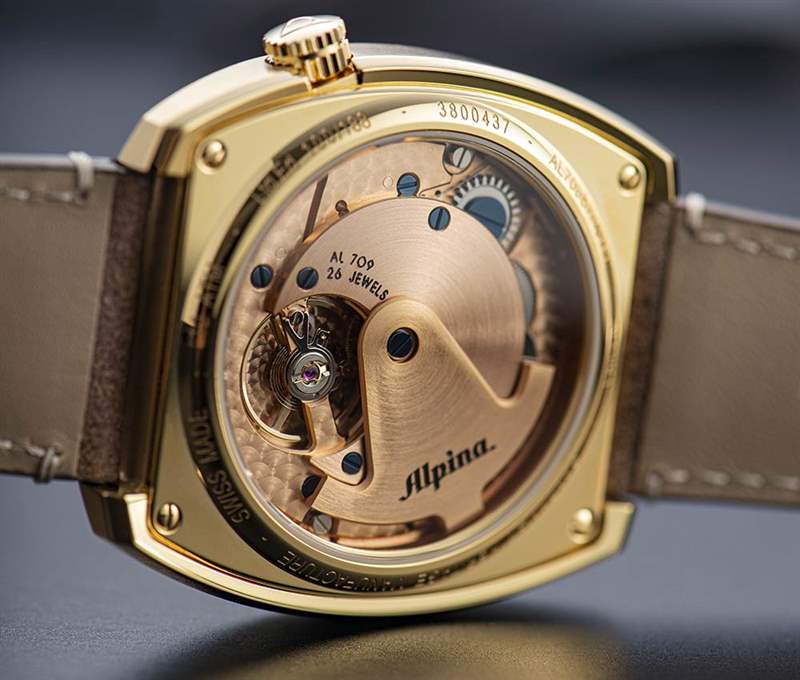 隨著年齡的增長,經驗積累和豐富,所以當你像Alpina一樣138歲時,你有足夠重要的遺產,能夠不時地提出新的想法。事實上,這個誕生于1883年、總部設在日內瓦的手表品牌已經深入研究了其檔案,以揭示20世紀初流行的“保險杠機芯”。這是一種具有擺陀的運動,其旋轉120°而不是360°,并由兩個彈簧以擺動的方式來回驅動。阿爾皮納使用這款機芯制造了其第六款機芯AL-709,它具有類似的結構,由刀片點綴330°旋轉。這款全新的發動機以4hz的頻率跳動并提供38小時的動力儲備,為Startimer Pilot Heritage Manufacturing提供裝備,每個參考限量發行188件。
