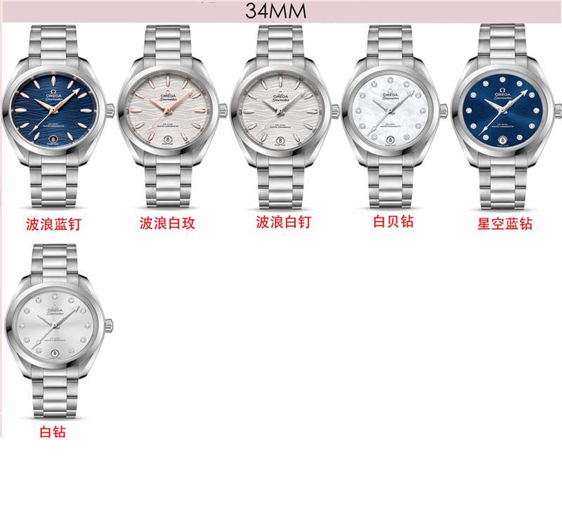 目前VS工廠推出了歐米茄海馬150米共計22個表款,包含鋼帶以及膠帶款式,均為鋼帶款式,后期VS會完善歐米茄海馬150的間金表款,不過目前來看海馬150系列的表款涉及運動款比較多,所以客戶選擇的白鋼以及膠帶款式比較多,畢竟運動出汗,容易腐蝕鋼帶,如果是玫瑰金色那么應該容易腐蝕掉色。目前VS工廠主要做的是41mm以及41.5mm還有34mm女士尺寸的腕表,也是海馬比較 熱銷的款式,其他36/38.5mm等尺寸目前都沒有出,因為新一代機芯尺寸大小的限制,再就是相對來說41mm的表款是現在最熱銷的款式。