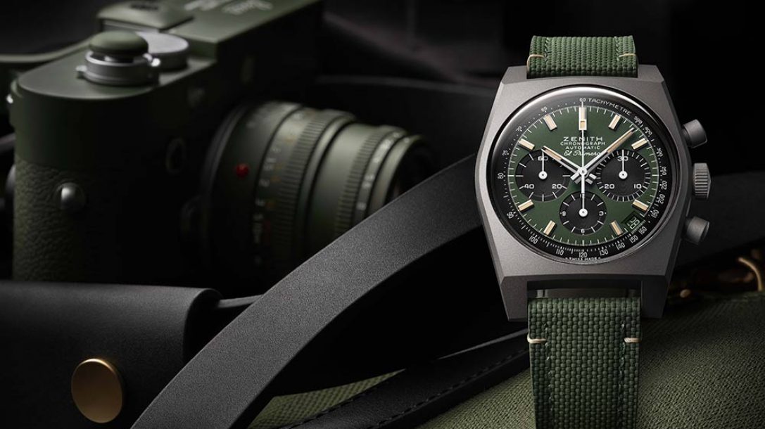 在過去的兩年里,真力時繼續慶祝其El Primero機芯50周年,推出限量版腕表,彰顯20世紀70年代經典精鋼表款的美學和人體工程學。盡管新款Chronomaster Revival Safari的外殼保留了1969年A384參考車的原始37mm直徑,其活塞式按鈕,其材料,鈦合金,堅固而輕巧,但它與所選顏色一樣,具有完全的現代感。因此,它的表盤呈現啞光綠色,具有多種色調,今年非常時尚。計時碼表的計數器和三角分體位置的黑色小秒針在這個表盤上顯得格外醒目。鏤空指針和時標還涂有米色Super-LumiNova?涂層,以確保在任何照明條件下都能獲得最佳易讀性。這種偽裝模式組合由表圈上的測速刻度環繞。