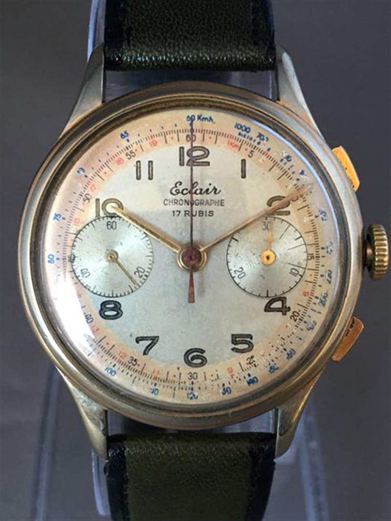 這是一款金色的 Eclair Chronograph Landeron 51,而且相當破舊。計時碼表是自行車記者的理想選擇,因為它喚起了自行車和汽車的速度差異。此外,它也符合電影的風格,因為第一個場景顯示小鎮從空蕩蕩的街道迅速醒來,進入喧囂的生活,仿佛它們被計時了。手表是黃金,但損壞和骯臟的事實顯示了時間的影響,就像小鎮本身已經從其復古的輝煌變成了現代的骯臟。