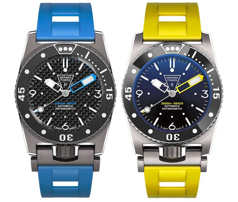 憑借其兩款 Grands Fonds 3000 Titanium?2021 復古款式,ZRC?開啟了其歷史上前所未有的篇章,其性能使日期與美學上具有吸引力。簡而言之,GF50686表款的啞光外觀與表殼的噴砂表面和黑色陶瓷表圈相得益彰。該套裝保護著采用真碳纖維制成的表盤。有史以來第一次!舒適的橡膠表帶上飾有藍色的劃線,分針和直驅的尖端凸顯了這個版本的運動特性。這款令人難以置信的太陽能GF50698參考車將表殼與緞面拉絲拋光表面相結合,表面裝飾著漸變色調,中央的黑色在邊緣處轉向藍色。這一次,表圈令人眼花繚亂。黃色在表帶、分針和“棒棒糖”風格的中央直驅上脫穎而出。